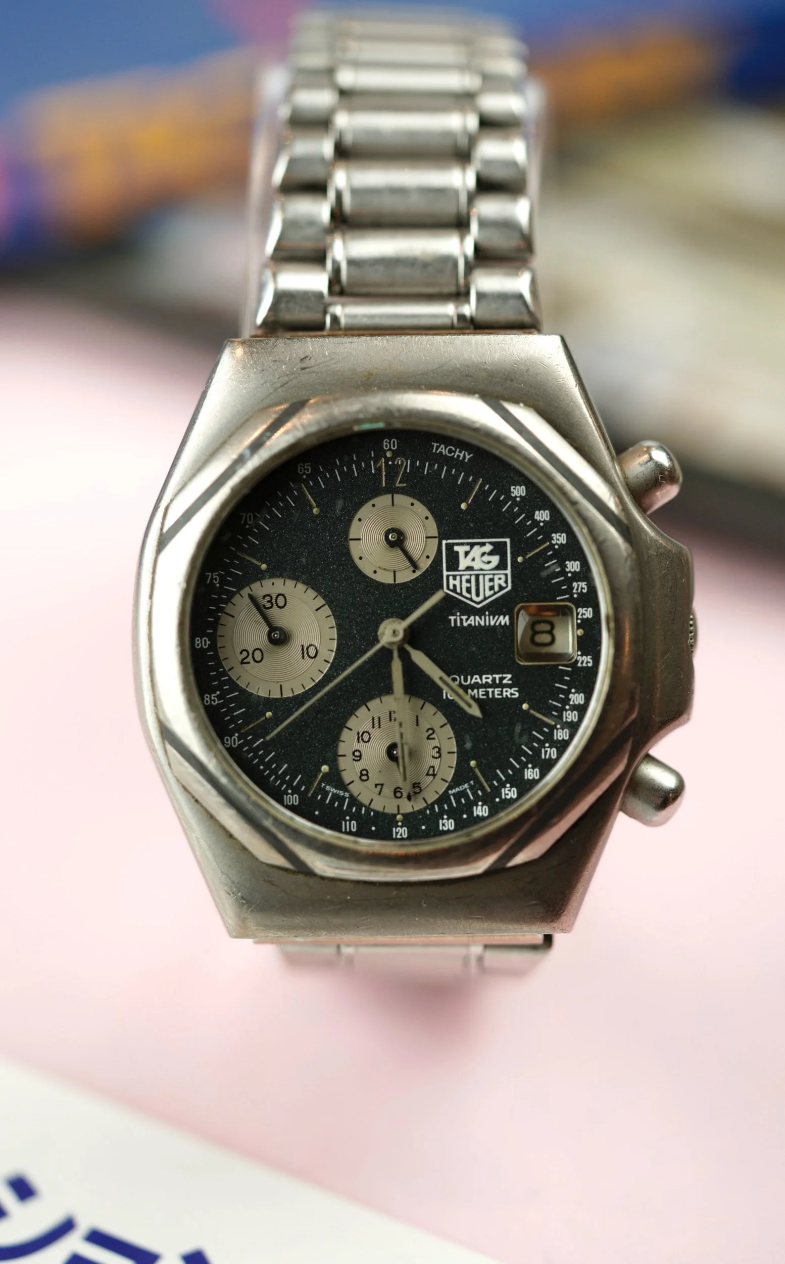 Collectors are drawn to the 223.206 for its unique mix of vintage motorsport DNA and modern material innovation. The titanium case makes it unusually light for a full-metal chronograph, while the sharp, octagonal bezel and crisp dial layout bring pure 1980s neo vintage Heuer energy. It’s a rare example that was only made during a four year span in the 1980’s.