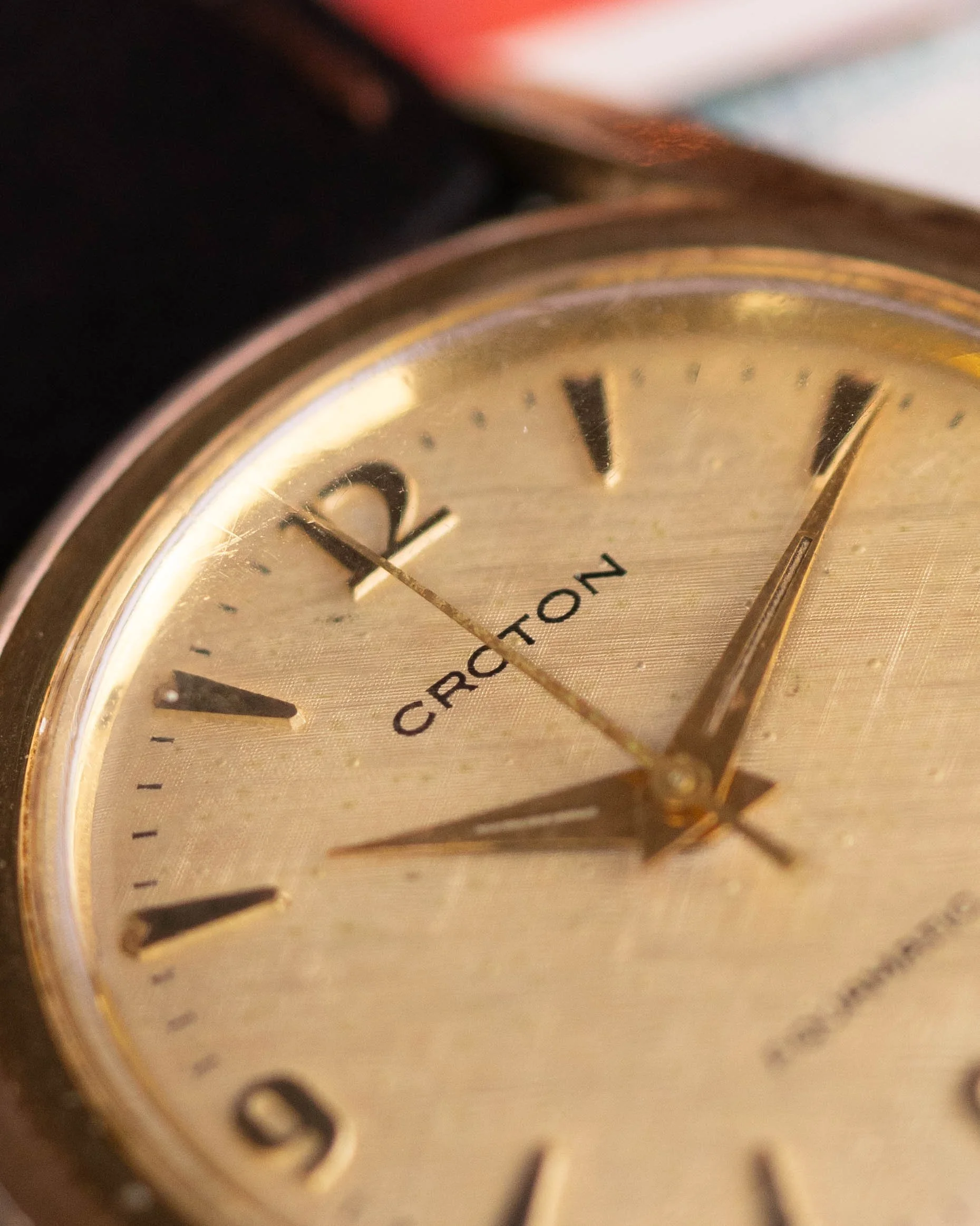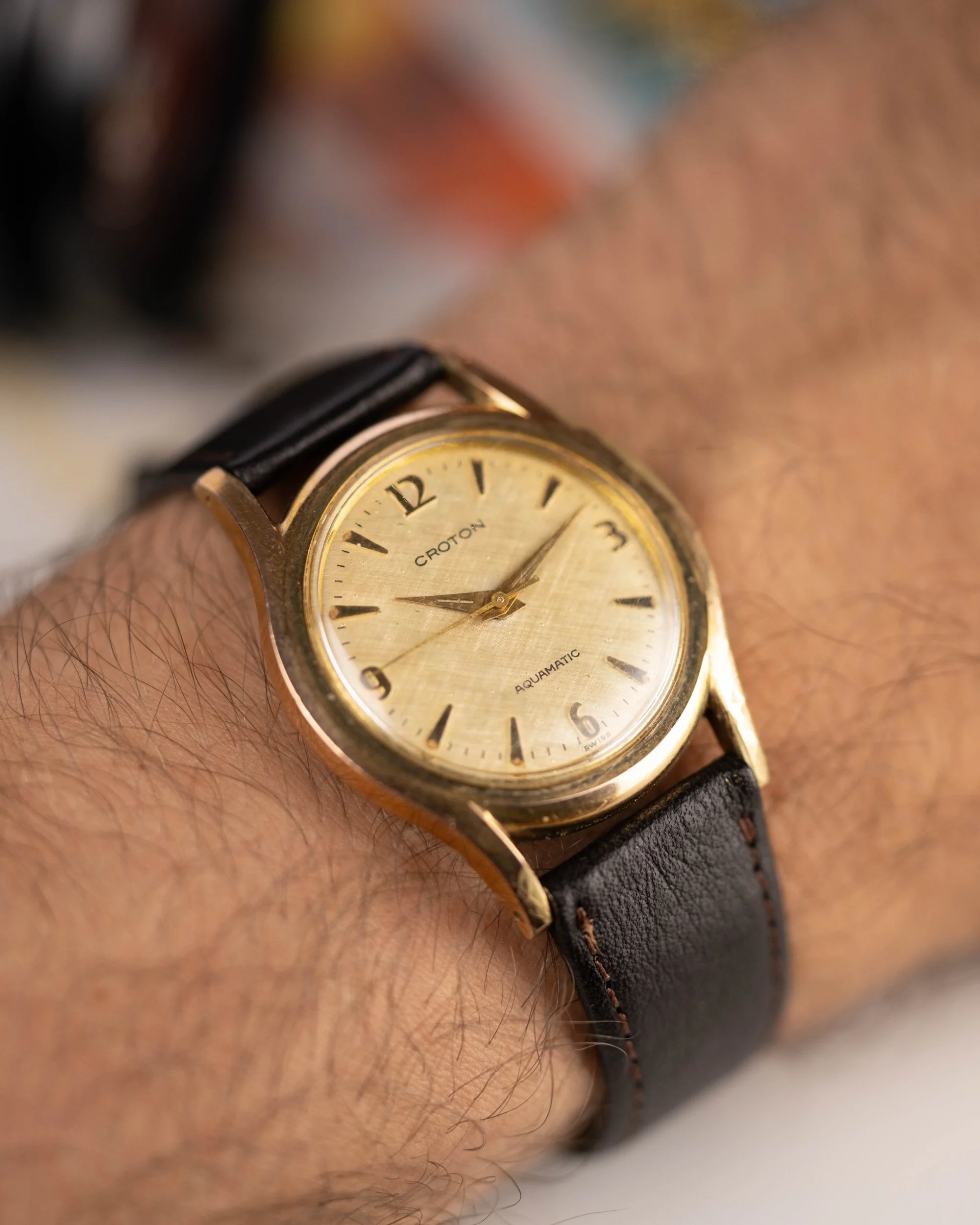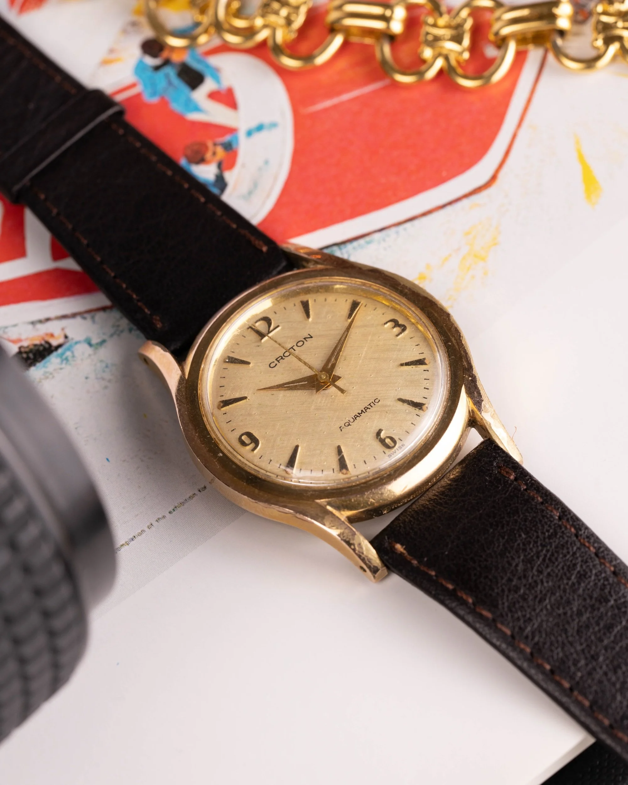 Croton (Nivada Gretchen) is a brand with a rich Swiss watchmaking history, best known for producing robust yet stylish watches in the mid-20th century. The Aquamatic line in particular was marketed as a reliable, water-resistant automatic, making it an accessible yet quality choice for the everyday wearer.