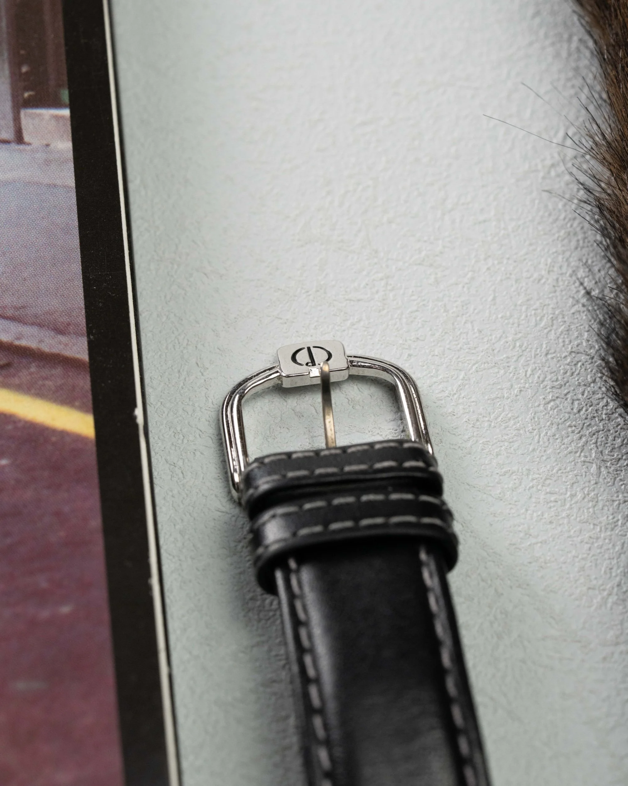 • Strap: Black leather strap with contrast stitching